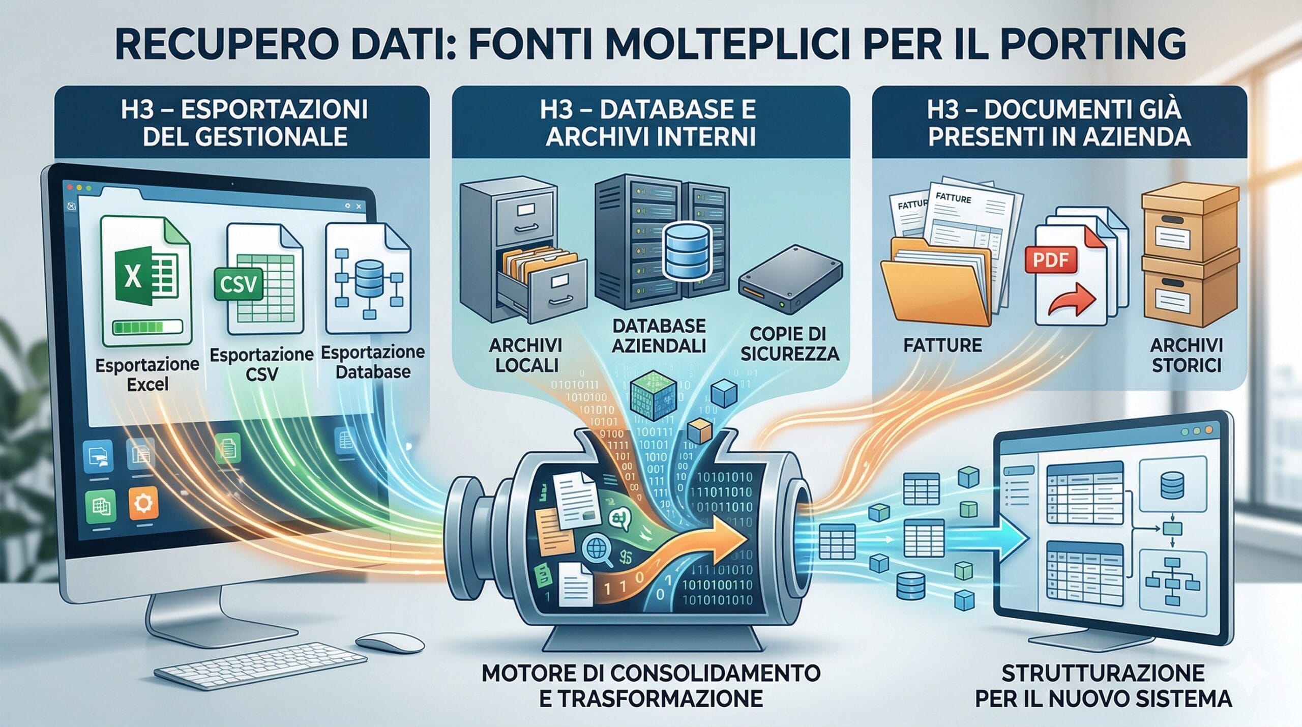 Questo lavoro non è un semplice “import/export”, ma una attività tecnica e progettuale, che tiene conto sia degli aspetti informatici sia di quelli operativi.